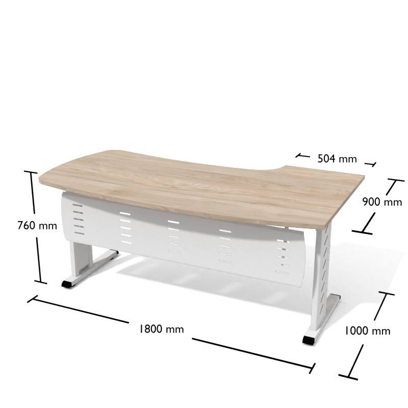 • Wysokość całkowita biurka z blatem 25 mm – 760 mm (regulacja na stopce + 30/35 mm).
