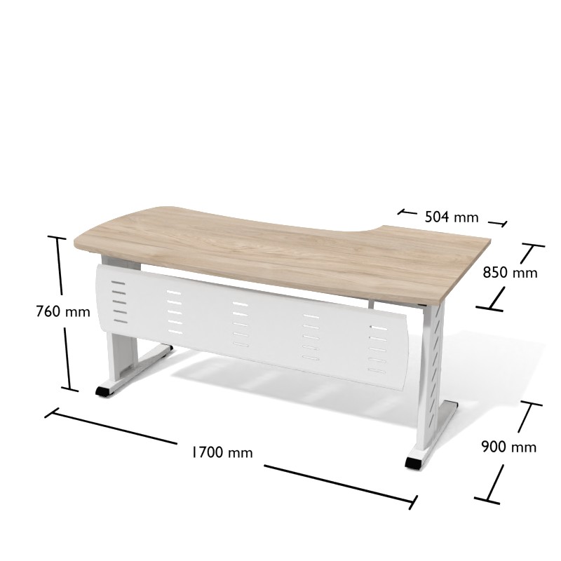 • Wysokość całkowita biurka z blatem 25 mm – 760 mm (regulacja na stopce + 30/35 mm).