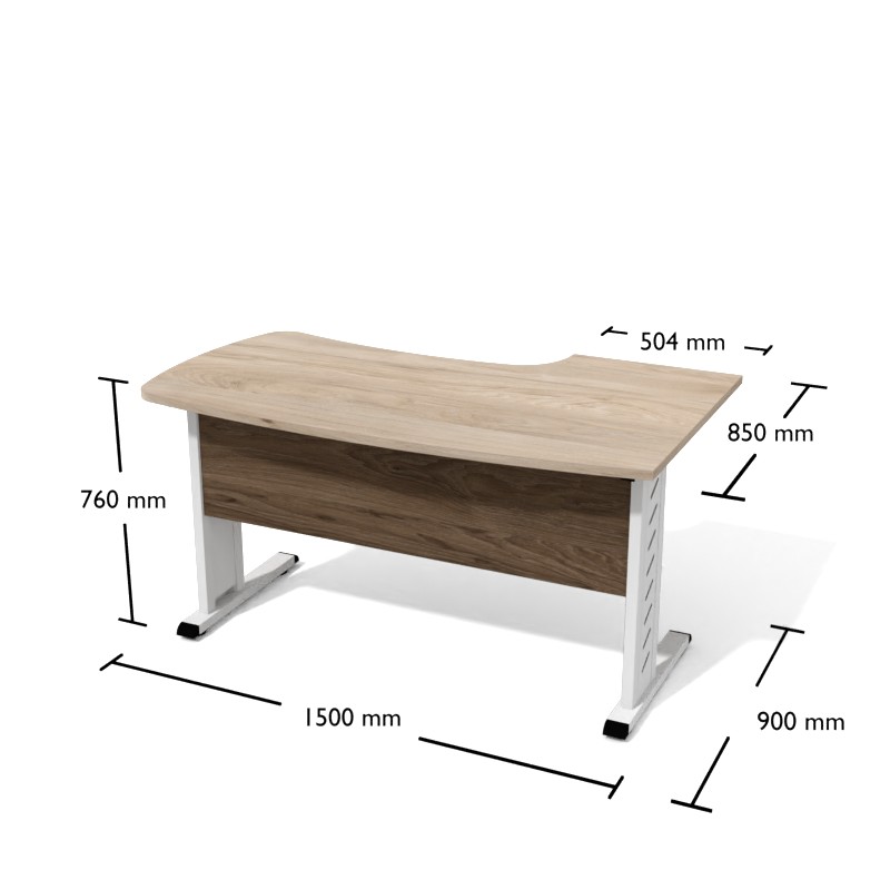 Stelaż metalowy: dwie nogi w kształcie odwróconej litery L połączone łączyną z płyty meblowej 18 mm o wymiarach – szerokość dostosowana do szerokości biurka, wysokość stała: 320 mm |