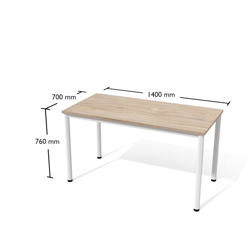 Blat o grubości 25 mm, nawisy pomiędzy nogami a blatem po 10 mm przód i tył oraz boki biurka. Nawis pomiędzy belką a blatem 32 mm przód i tył oraz boki biurka.