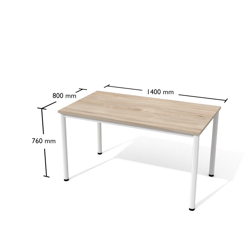 Blat o grubości 25 mm, nawisy pomiędzy nogami a blatem po 10 mm przód i tył oraz boki biurka. Nawis pomiędzy belką a blatem 32 mm przód i tył oraz boki biurka.