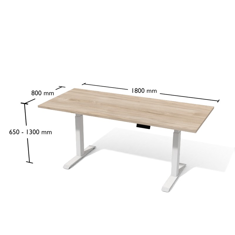 Panel biurka pozwala na regulację wysokości w zakresie 625-1275 mm. Bezpieczeństwo podczas regulacji zapewnia specjalny system, który zahamuje przesuwanie sie blatu gdy tylko napotka przeszkodę. stelaż dostępny jest w trzech kolorach – białym, czarnym i srebrnym. Dzięki regulownej szerokości (w zakresie 1075–1800 mm) można do niego zamocować blat o maksymalnych wymiarach 1000x2000 mm.