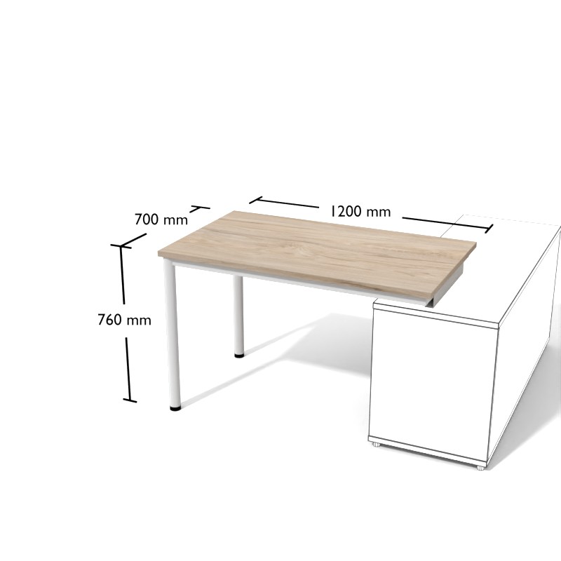 Dostawka Lt1 służy do łączenia biurek prostych pod kątem prostym w kształt litery L, C i U