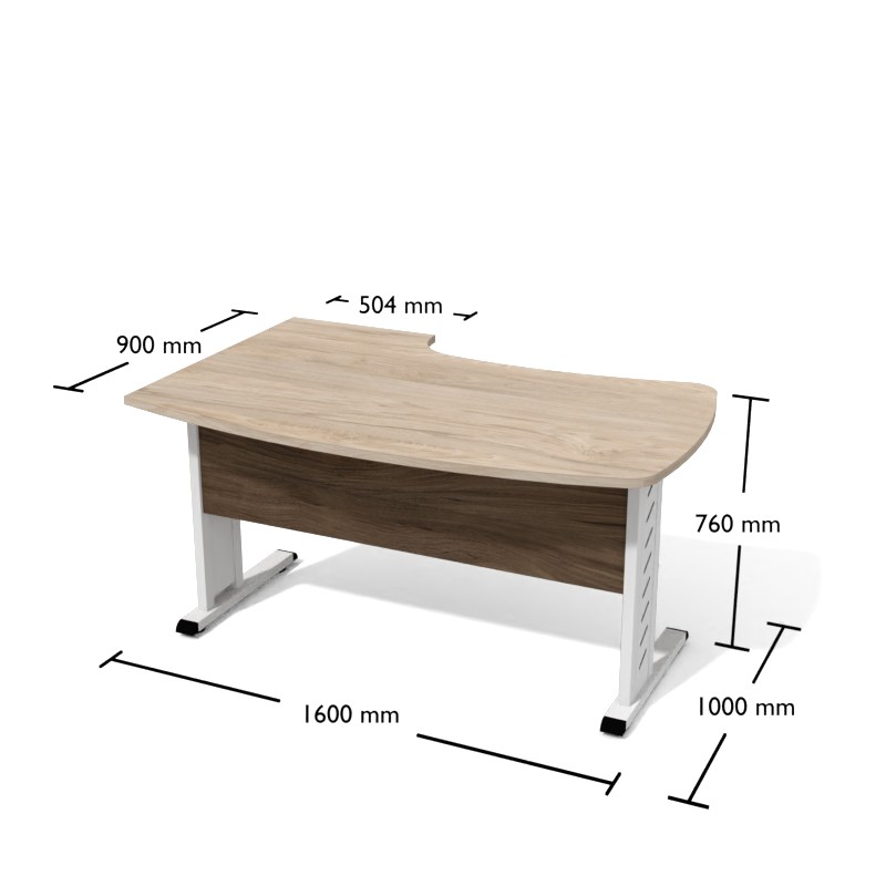 • Wysokość całkowita biurka z blatem 25mm – 760 mm (regulacja na stopce + 30/35 mm)