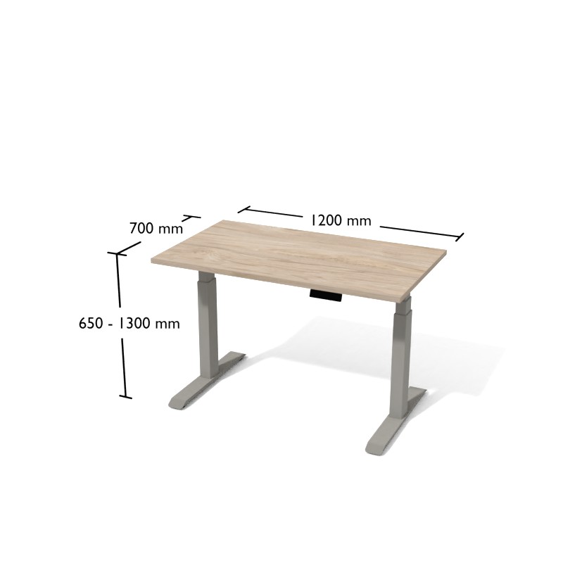 Panel biurka pozwala na regulację wysokości w zakresie 625-1275 mm. Bezpieczeństwo podczas regulacji zapewnia specjalny system, który zahamuje przesuwanie sie blatu gdy tylko napotka przeszkodę. stelaż dostępny jest w trzech kolorach – białym, czarnym i srebrnym. Dzięki regulownej szerokości (w zakresie 1075–1800 mm) można do niego zamocować blat o maksymalnych wymiarach 1000x2000 mm.