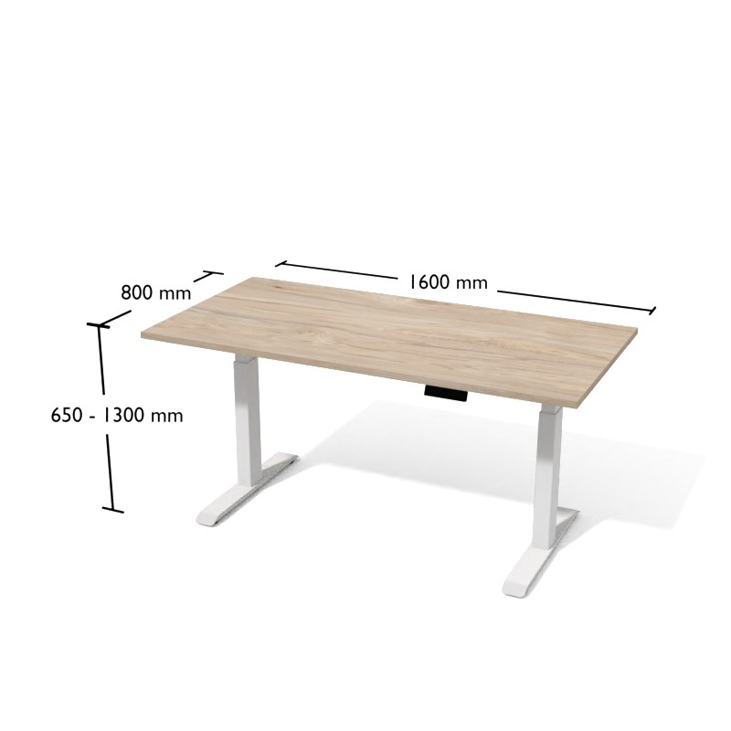 Panel biurka pozwala na regulację wysokości w zakresie 625-1275 mm. Bezpieczeństwo podczas regulacji zapewnia specjalny system, który zahamuje przesuwanie sie blatu gdy tylko napotka przeszkodę. stelaż dostępny jest w trzech kolorach – białym, czarnym i srebrnym. Dzięki regulownej szerokości (w zakresie 1075–1800 mm) można do niego zamocować blat o maksymalnych wymiarach 1000x2000 mm.